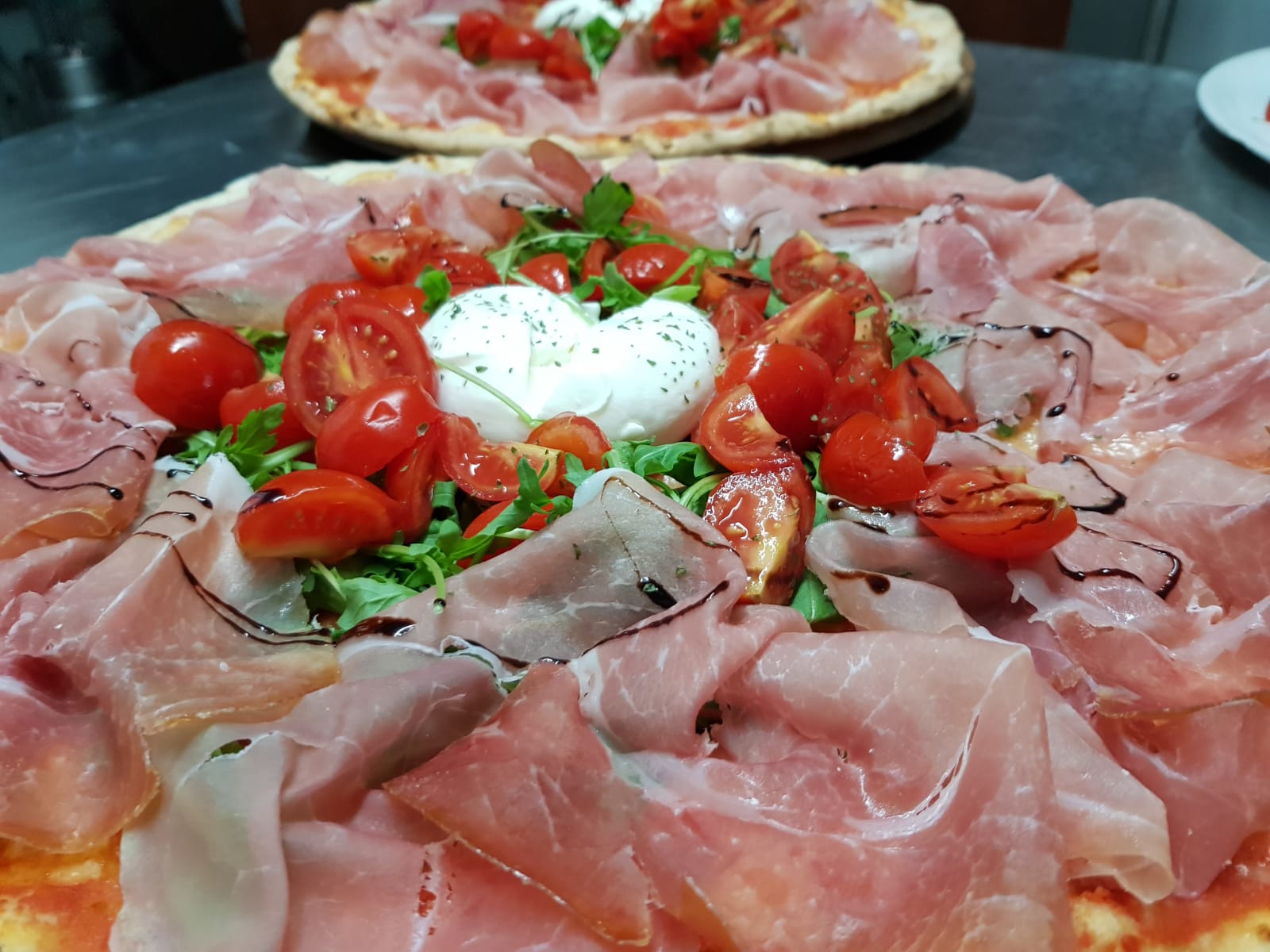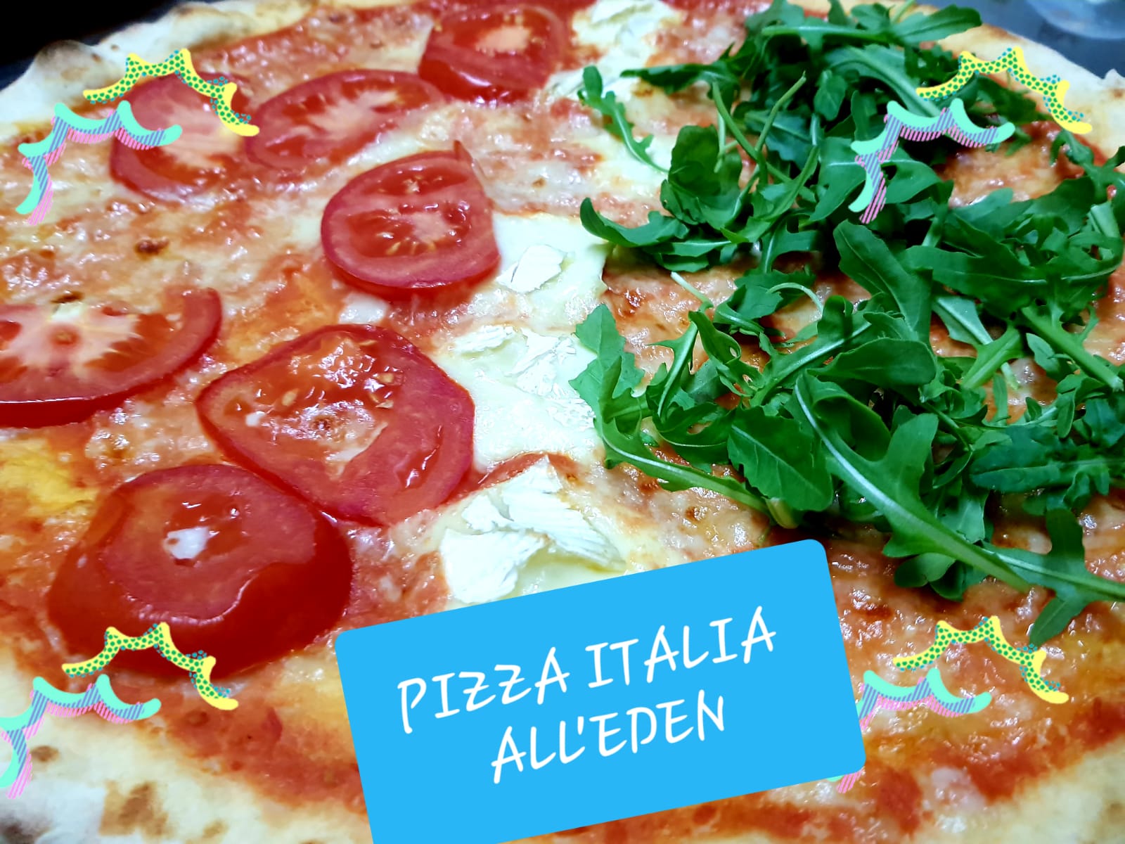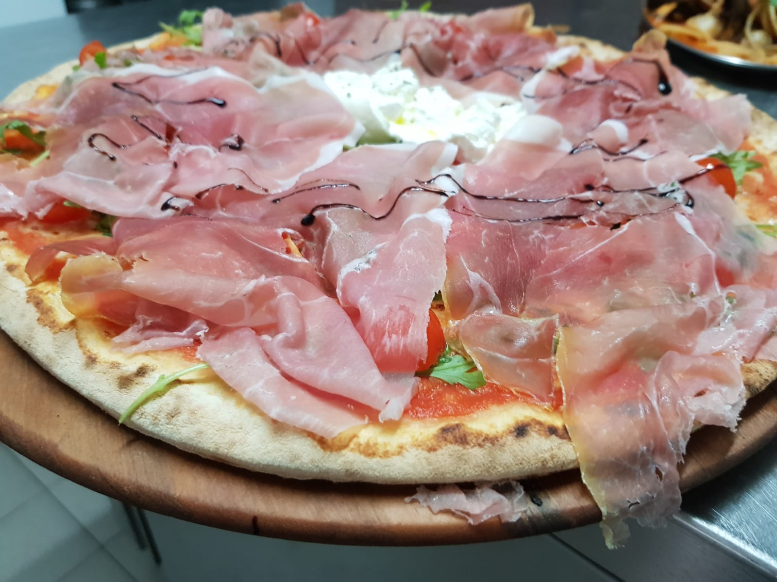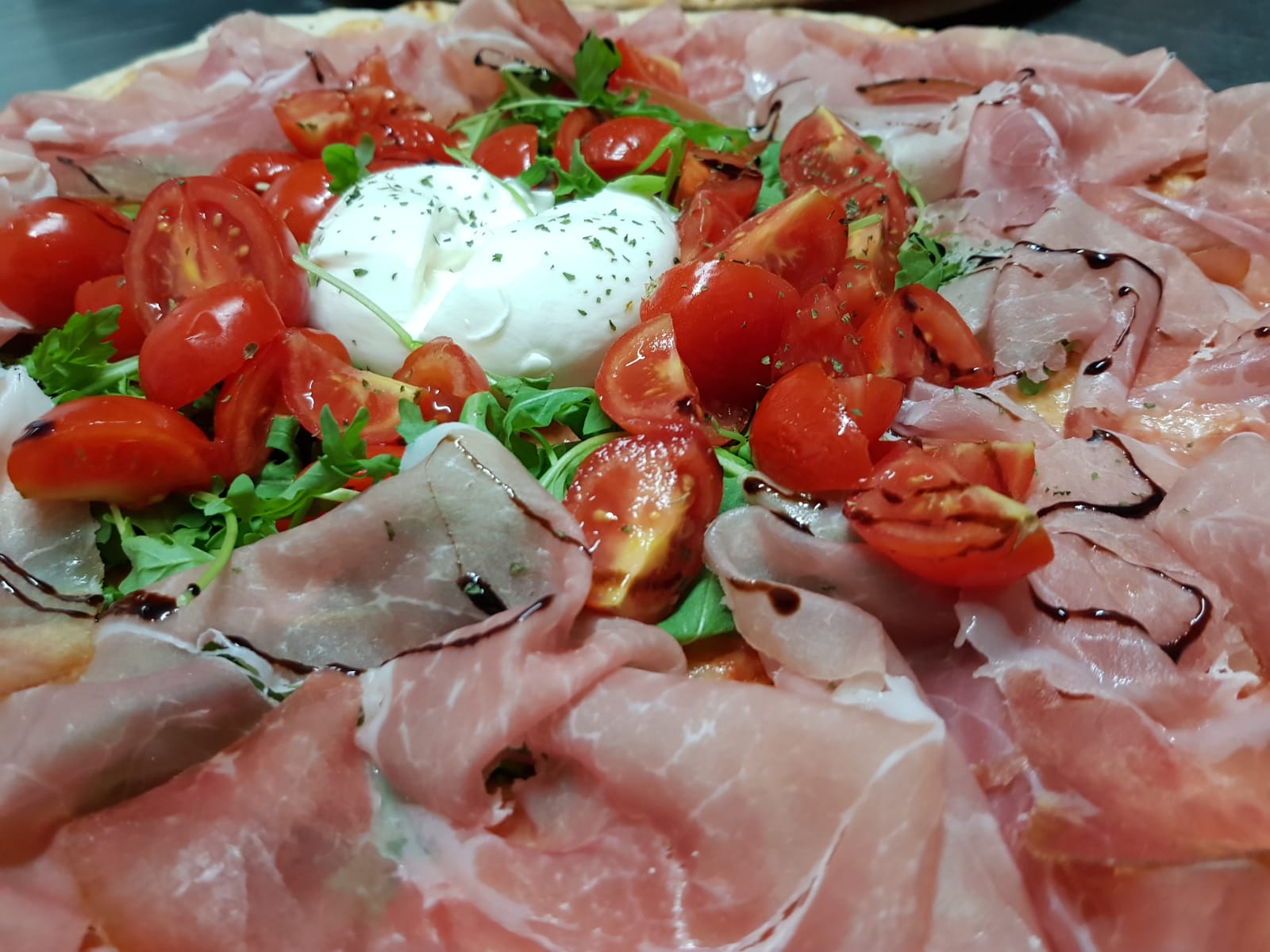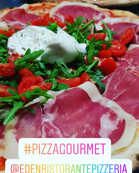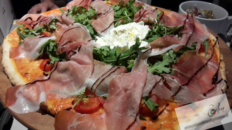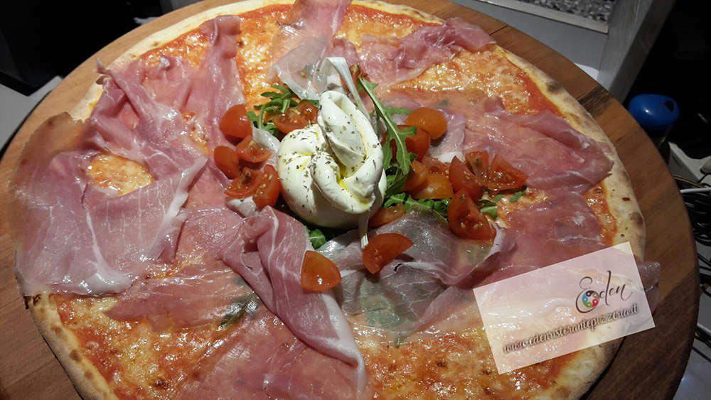 "PIZZA SUPER SPECIALE EDEN" Burrata, prosciutto crudo, ciliegine e rucola